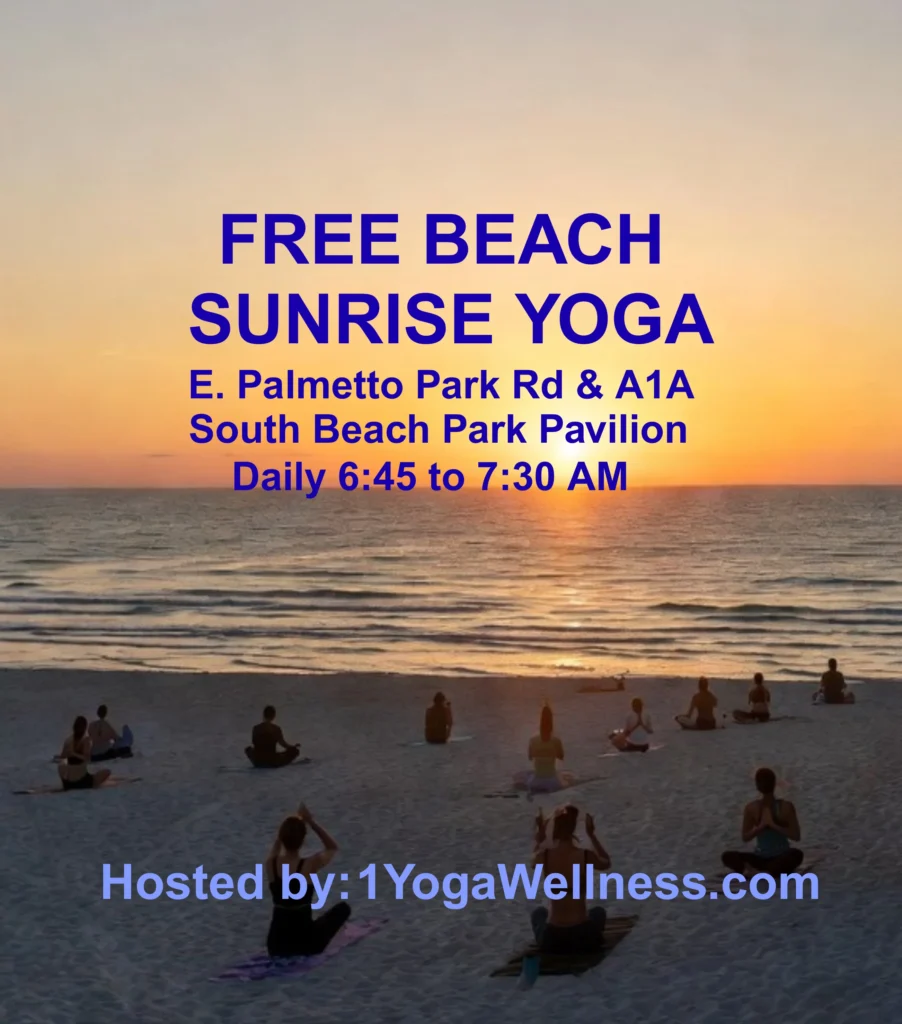 Each morning, with the first light breaking across the horizon and touching the Atlantic Ocean with shades of pink and gold, something special happens in South Beach Park Pavilion. Friday, Saturday, and Sunday from 6:45 to 7:30 AM at the, rain or shine, we greet the dawn, and give ourselves the gift of morning Sunrise Yoga.